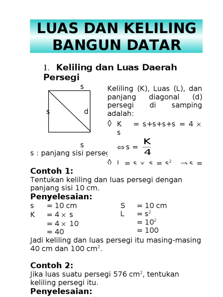 Rumus Persegi Luas Keliling Volume Dan Contoh Soal