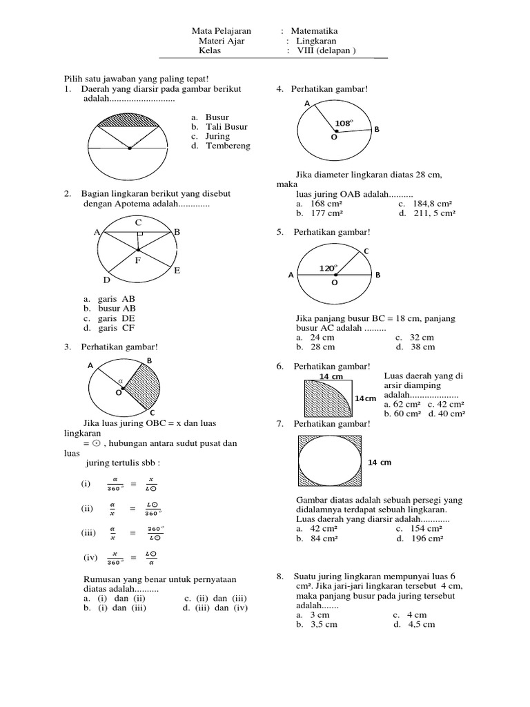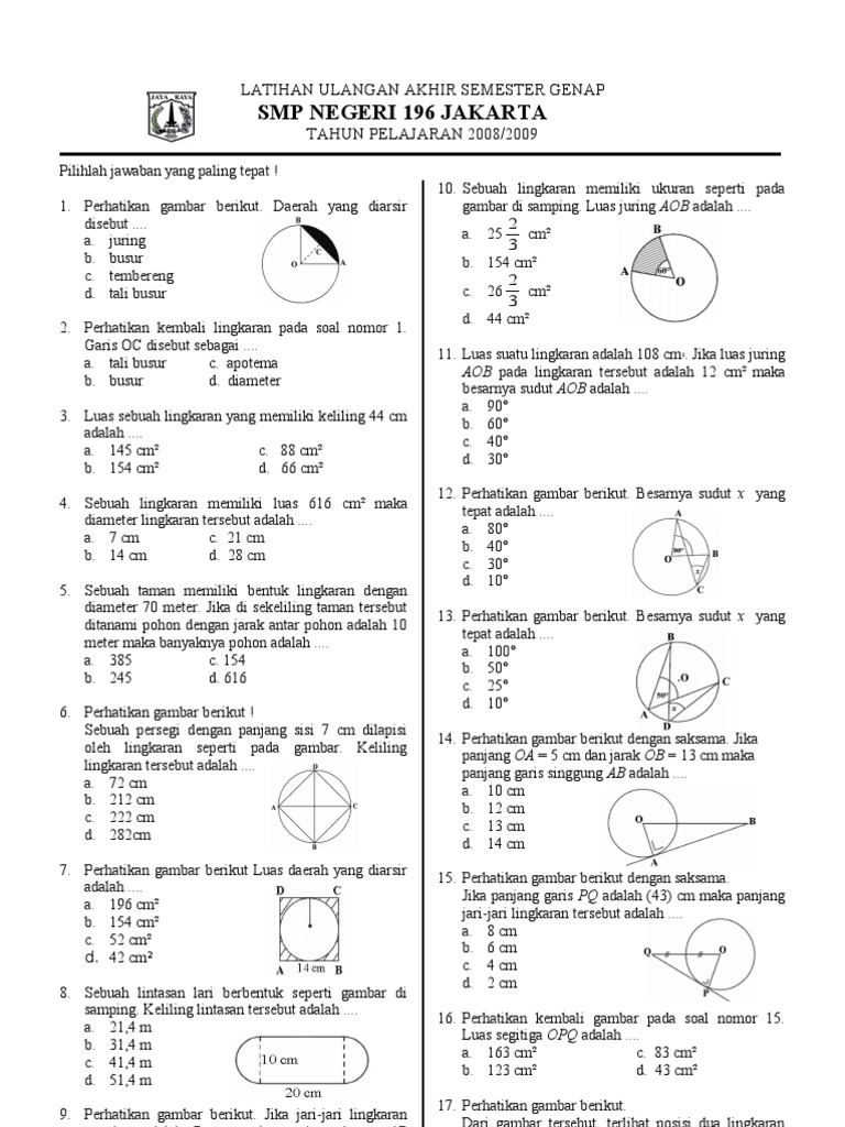 Paket Latihan 1 Luas Segitiga Sama Sisi Dan Luas Juring Dan Luas Tembereng 1 Luas Segitiga Sama Sisi Pdf Document