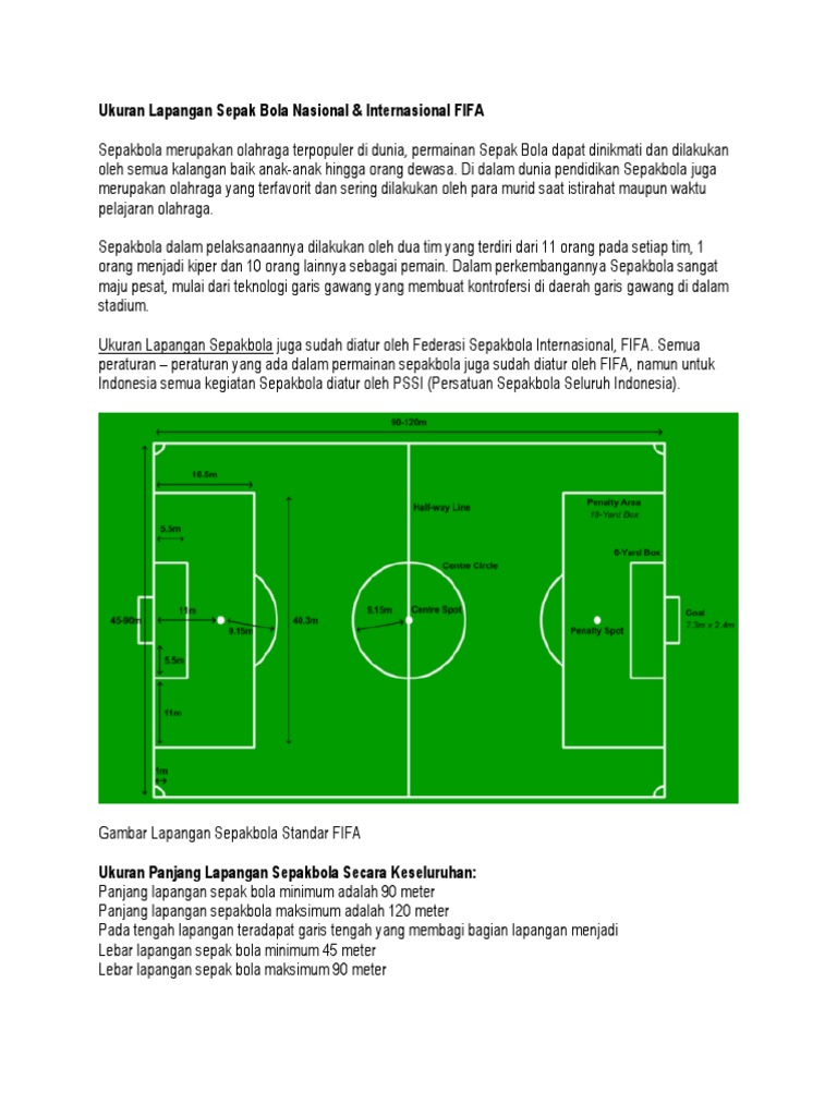 Ukuran Lapangan Sepak Bola Beserta Gambar Dan Keterangannya Full