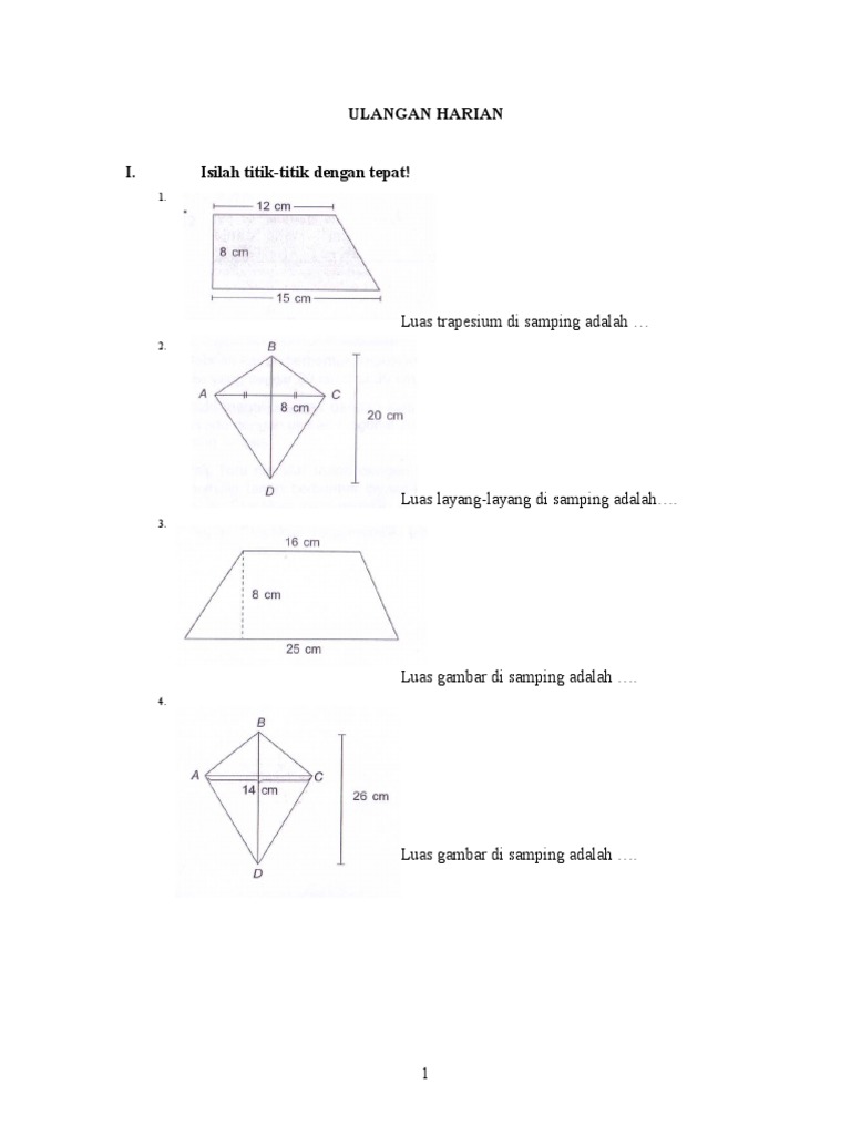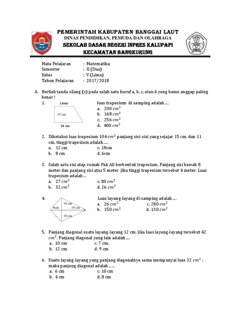 Soal Matematika Kelas 5 Sd Bab 4 Trapesium Dan Layang Layang Dan Kunci Jawaban Bimbel Brilian