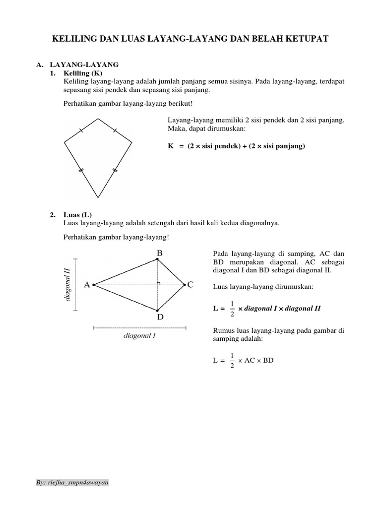 Rumus Mencari Diagonal Layang Layang Jika Luas Layang Layang Nya Saja Yg Diketahui Youtube