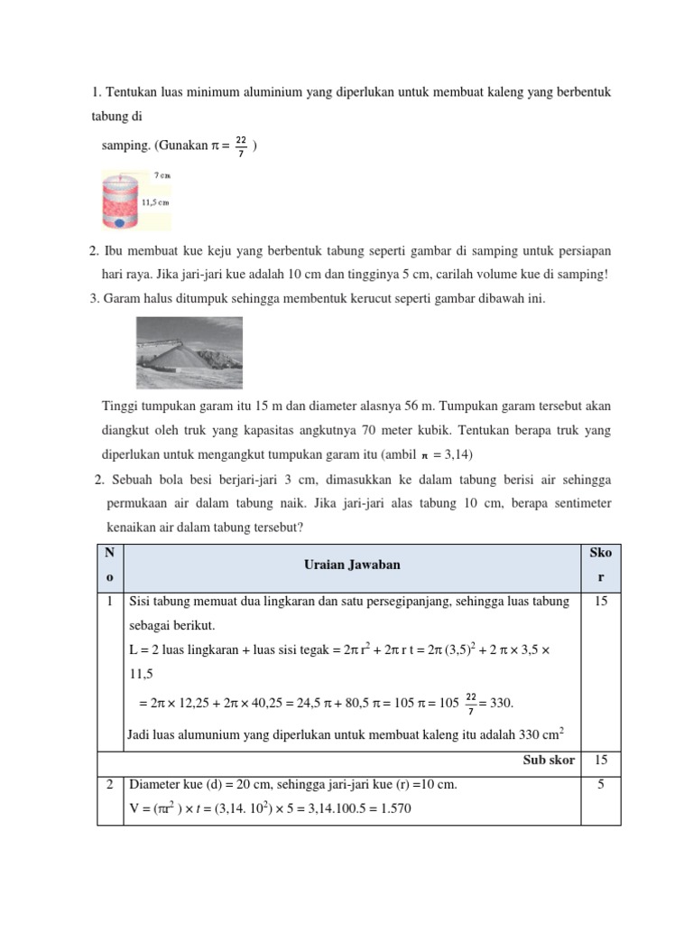 Suatu Tabung Diameter Alasnya 14 Cm Dan Tingginya 20 Cm Luas Selimut Tabung Adalah Sentimeter Brainly Co Id
