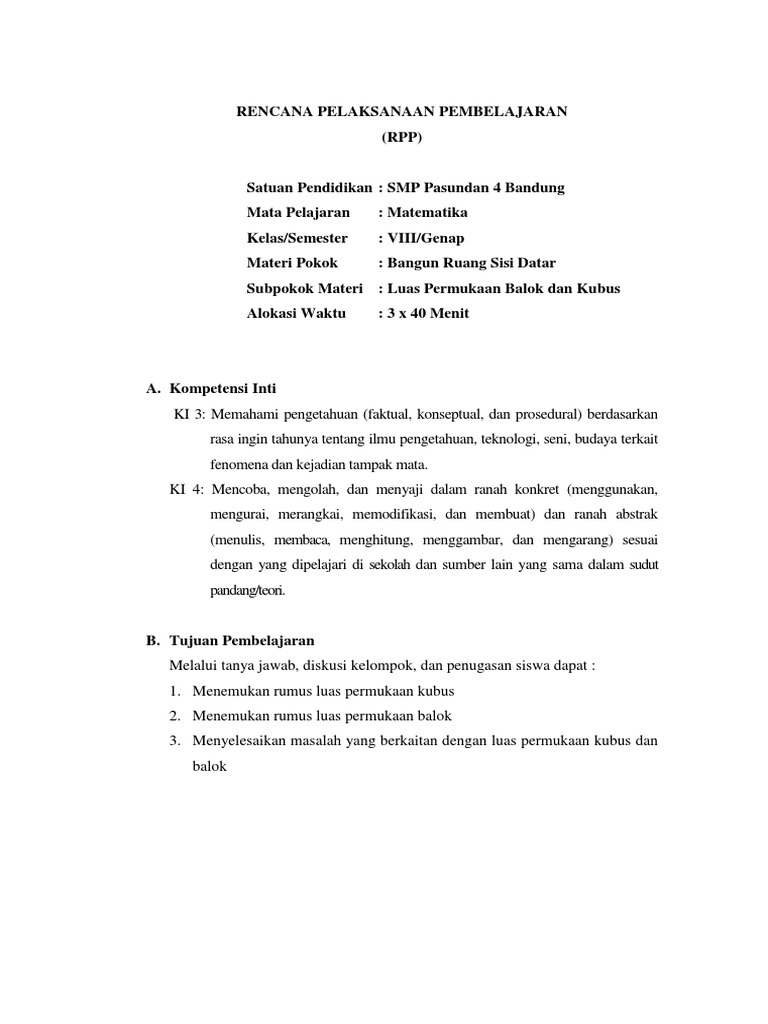 Luas Permukaan Kubus Wibowo S Pd 085 233 897 897 Ponorogo 29 Mei 2013 Luas Permukaan Kubus Dan Balok Luas Permukaan Kubus Pdf Document