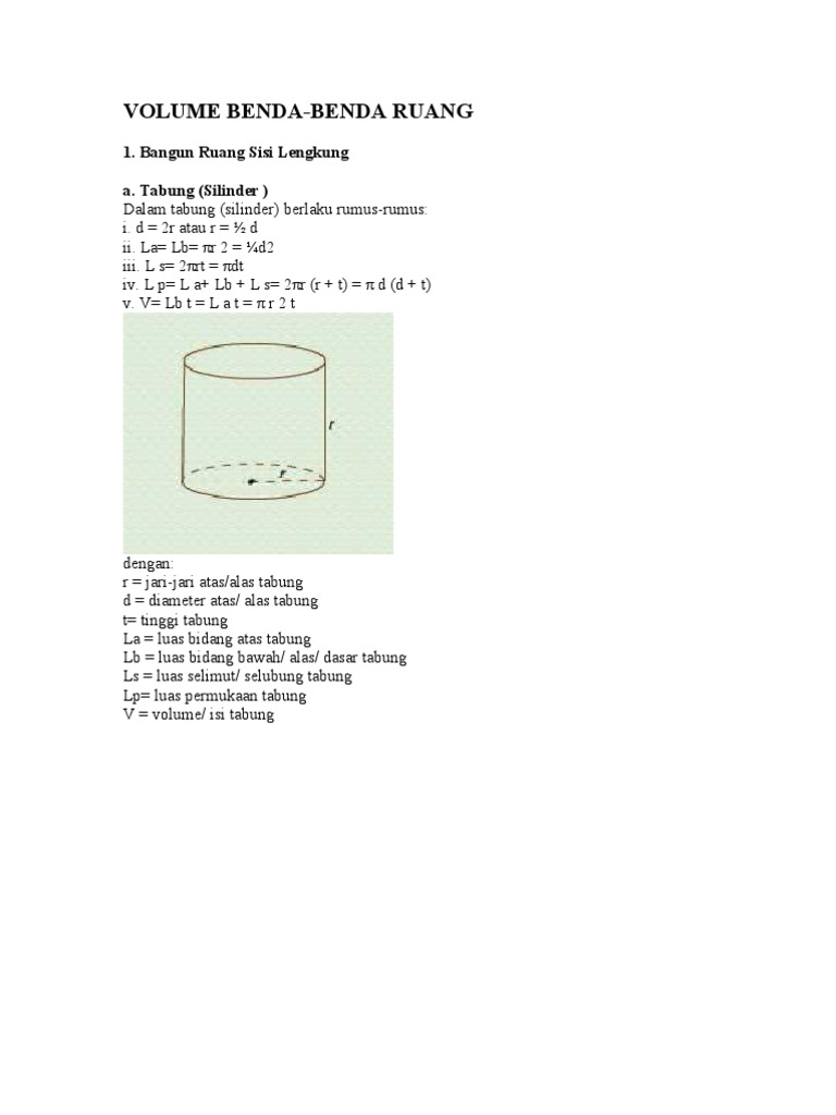 Bangun Ruang Sisi Lengkung Luas Permukaan Tabung Di Samping Adalah 1 406 72 Cm2 Tentukan Tinggi Tabung Tersebut 3 Volume Tabung Diketahui Luas Permukaan Tabung 1 406 72 Pdf Document