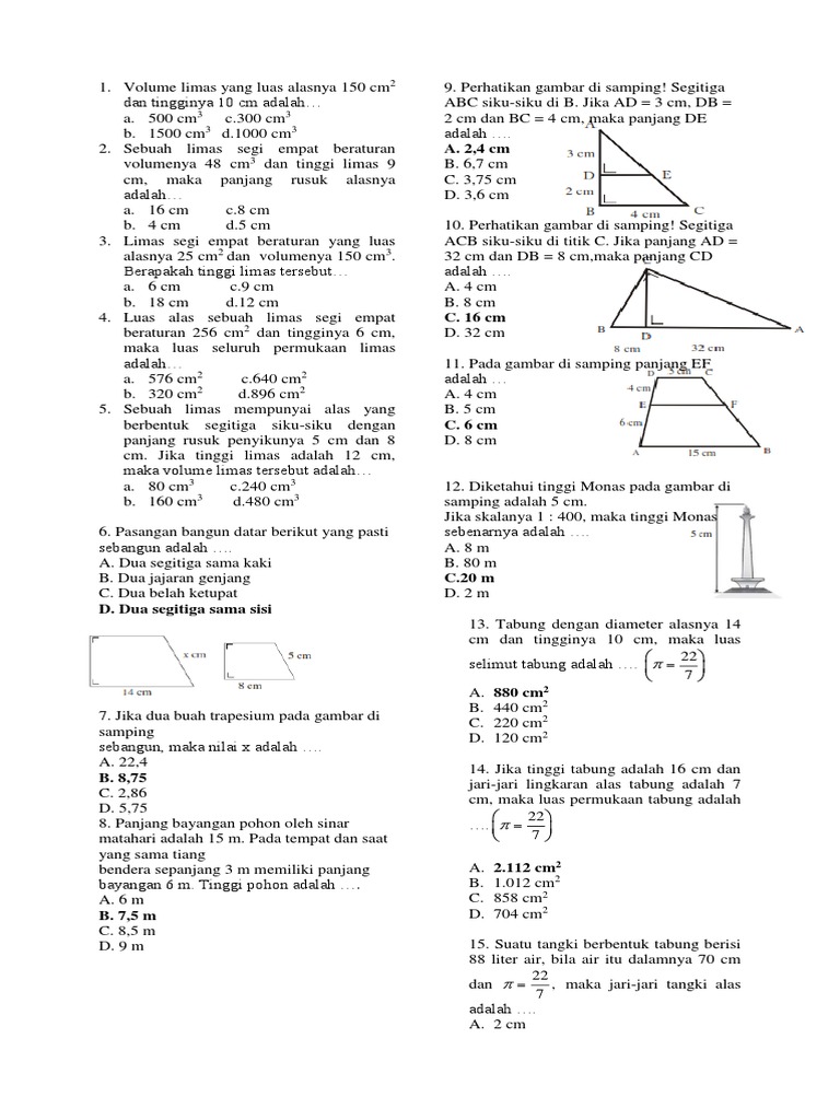 Bangun Ruang Sisi Lengkung Luas Permukaan Tabung Di Samping Adalah 1 406 72 Cm2 Tentukan Tinggi Tabung Tersebut 3 Volume Tabung Diketahui Luas Permukaan Tabung 1 406 72 Pdf Document
