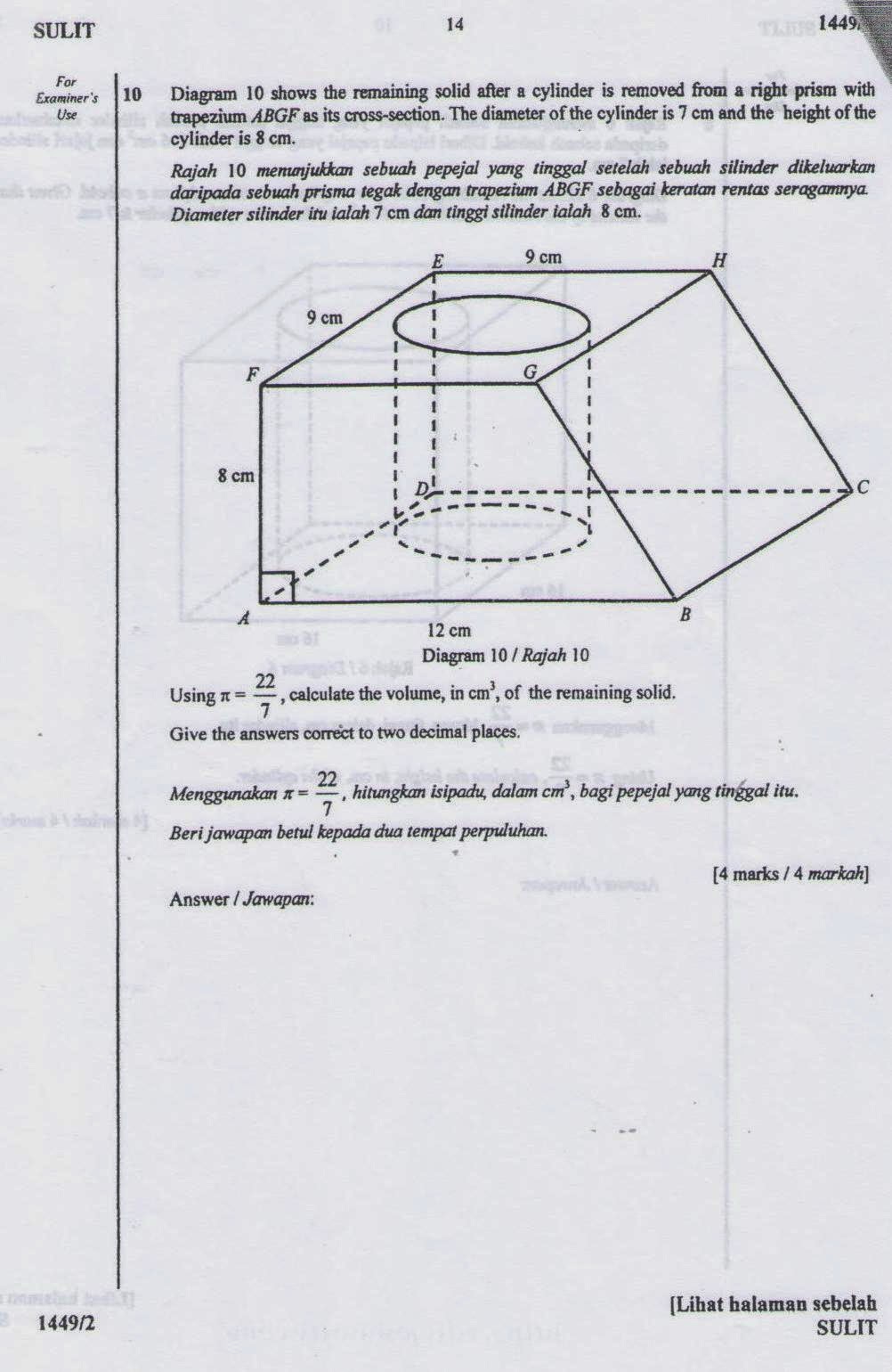The Volume Of The Right Prism Is 672 Cm 3 Hitung Calculate Rajah 5 Diagram 5 A Course Hero