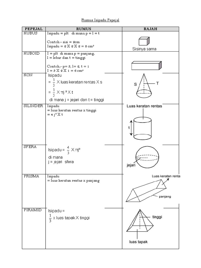 11 Luas Jumlah Luas Dan Isipadu Area Total Surface Area Volume Chegu Zam