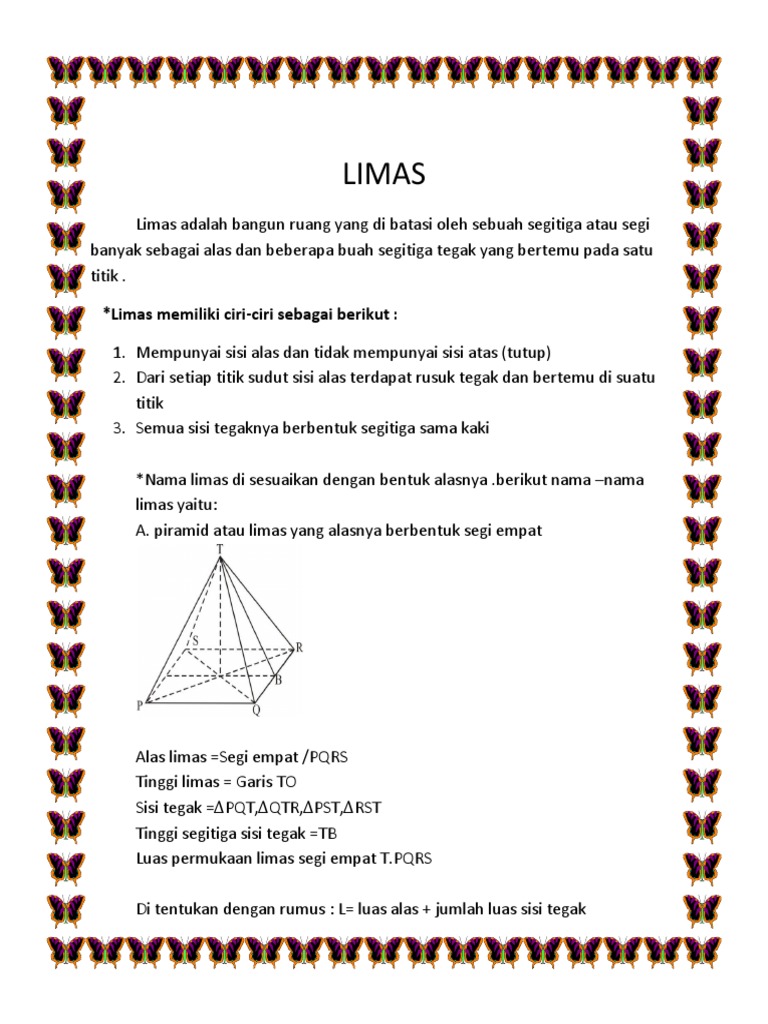 Perhatikan Limas Pada Gambar Disamping Jumlah Luas Selutuh Sisi Tegak Limas Tersebut Adalah Brainly Co Id
