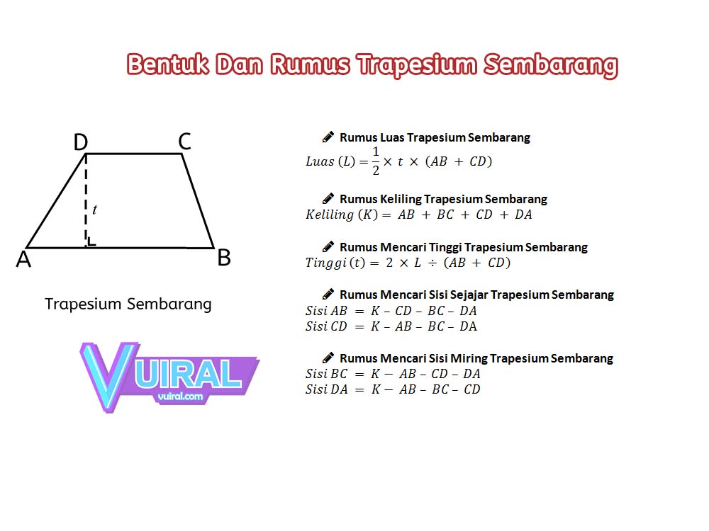 Bentuk Ciri Ciri Rumus Luas Dan Keliling Trapesium Lengkap Vuiral
