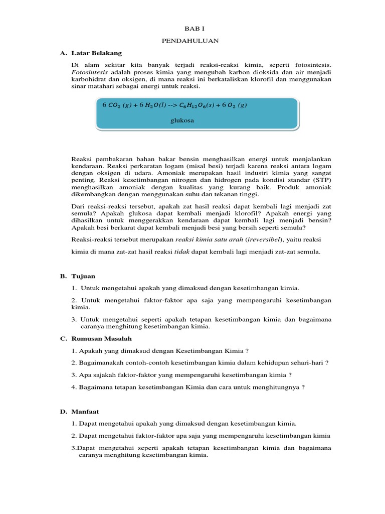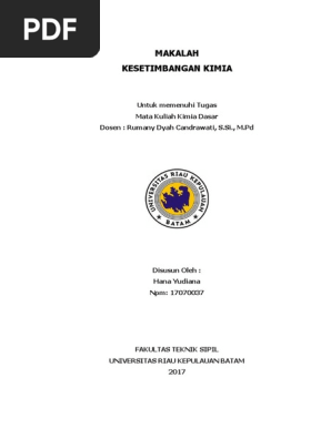 Kesetimbangan Kimia Kesetimbangan Kimia Bab I Pendahuluan I 1 Latar Belakang Banyak Sekali Mahasiswa Yang Mengambil Mata Kuliah Kimia Dasar Ii Yang Course Hero