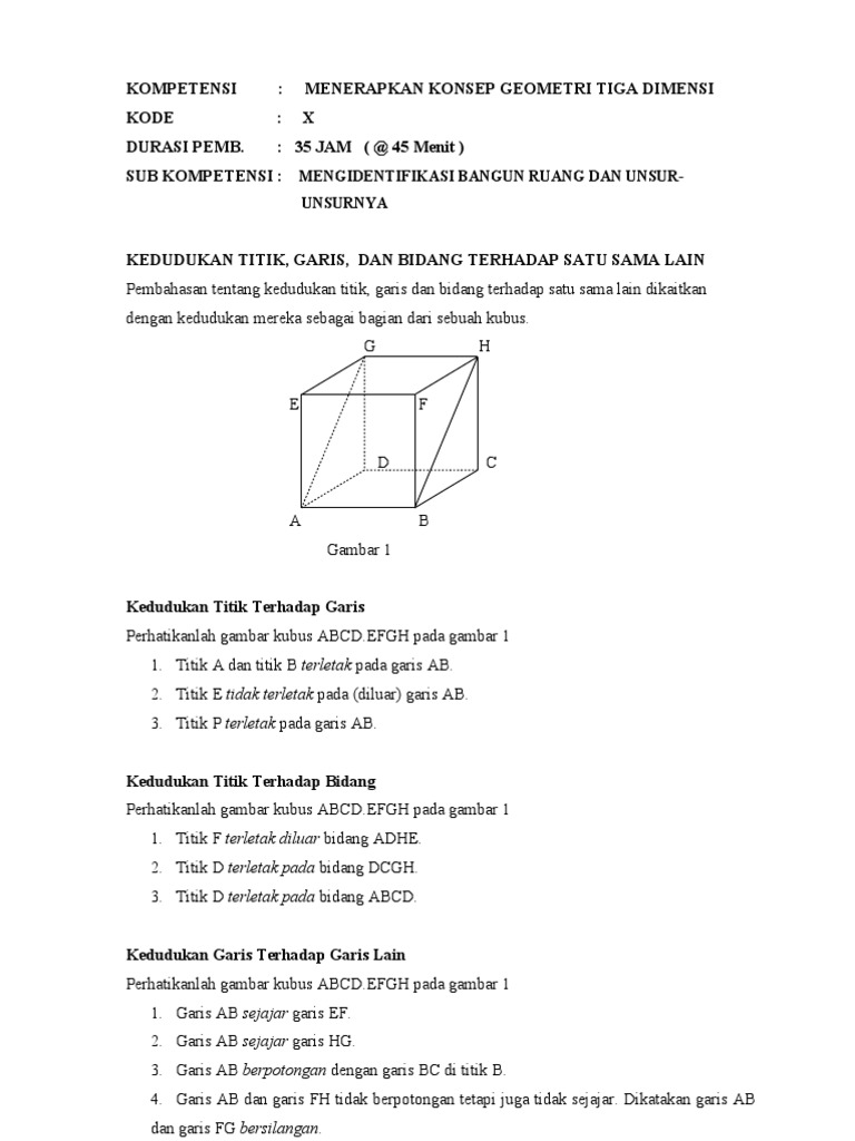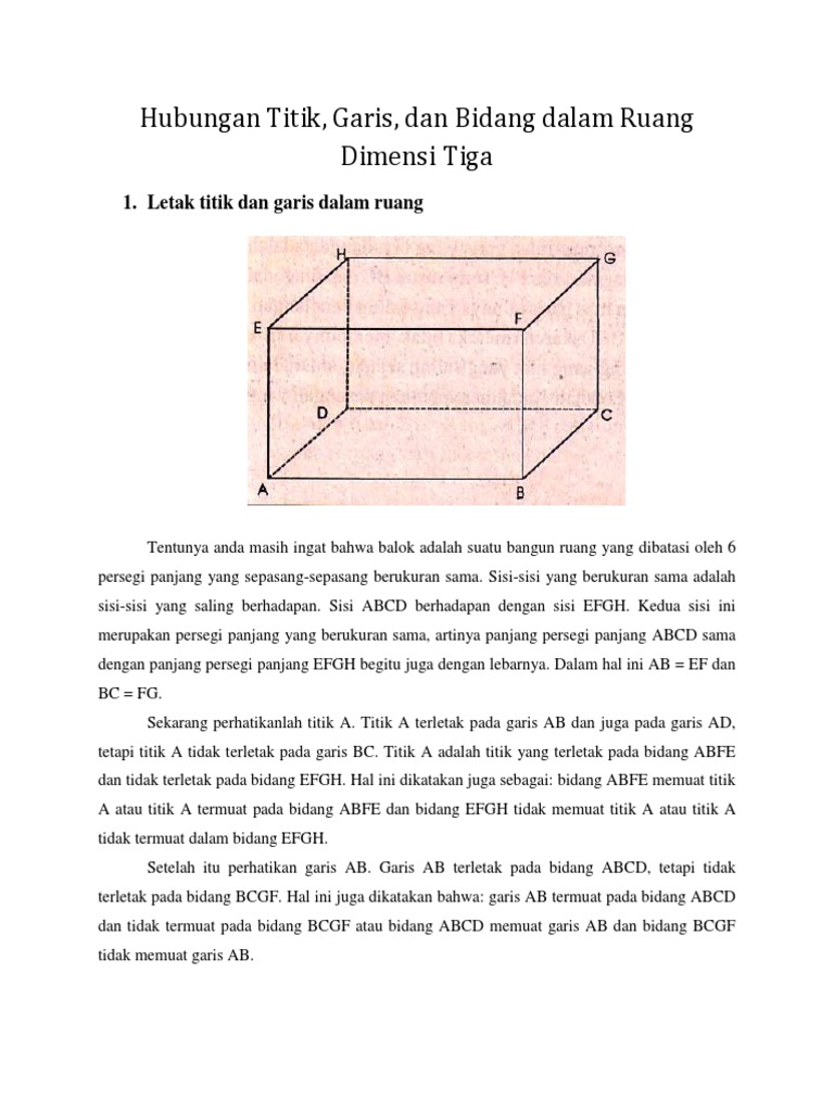 Dimensi Tiga Kedudukan Titik Garis Dan Bidang Konsep Matematika Koma