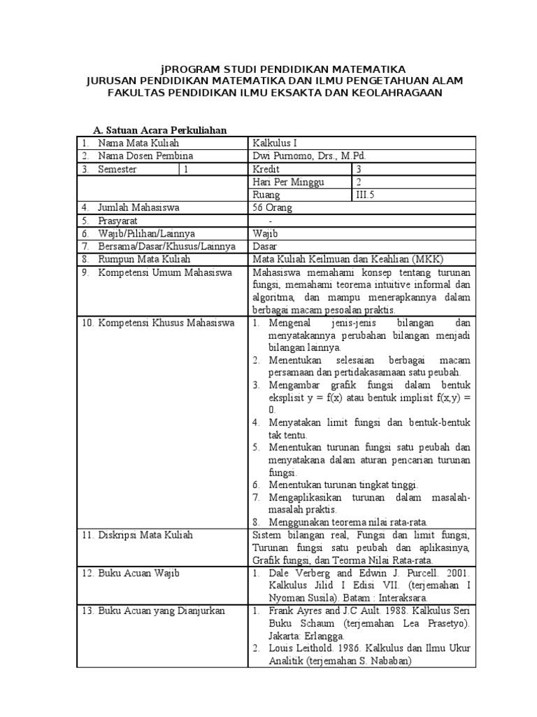 Doc Daftar Mata Kuliah Program Studi Pendidikan Matematika Ghozian Thirafi Academia Edu