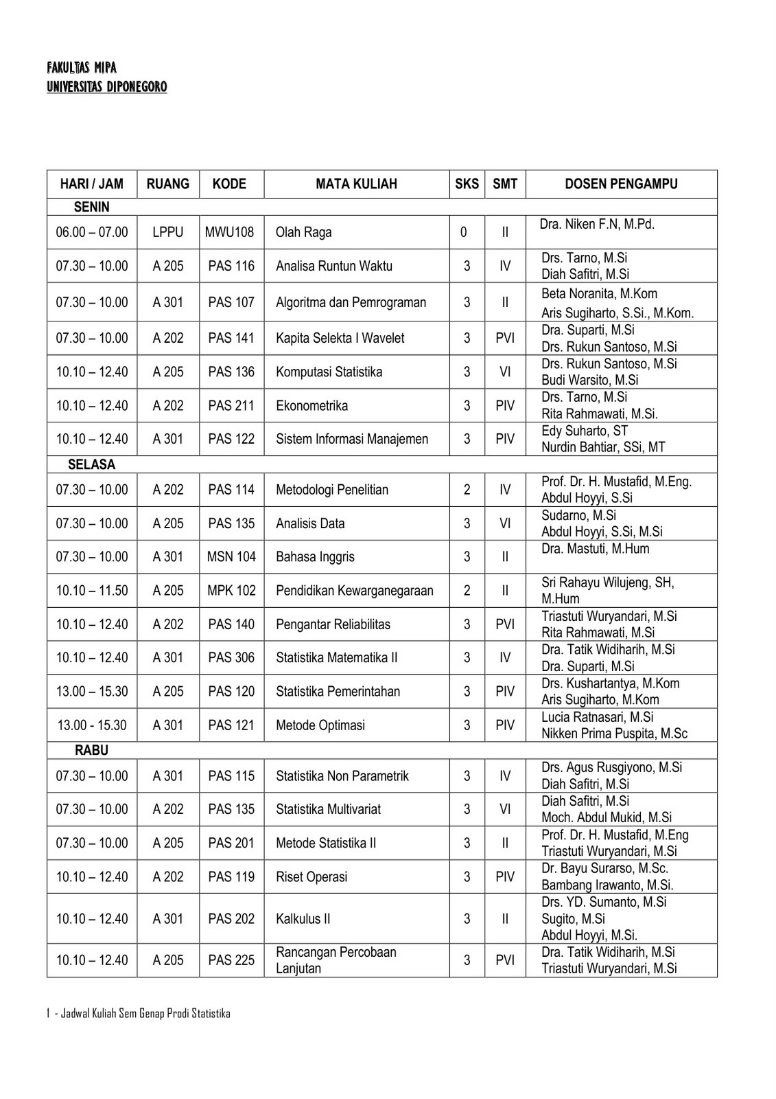 Mata kuliah statistika undip. Diutamakan untuk mendatangi admin feeder departemen statistika terhitung mulai selasa 19 november 2019 2. Fc ijazah dan fc transkrip. Perangkat lunak yang dipakai adalah spss.