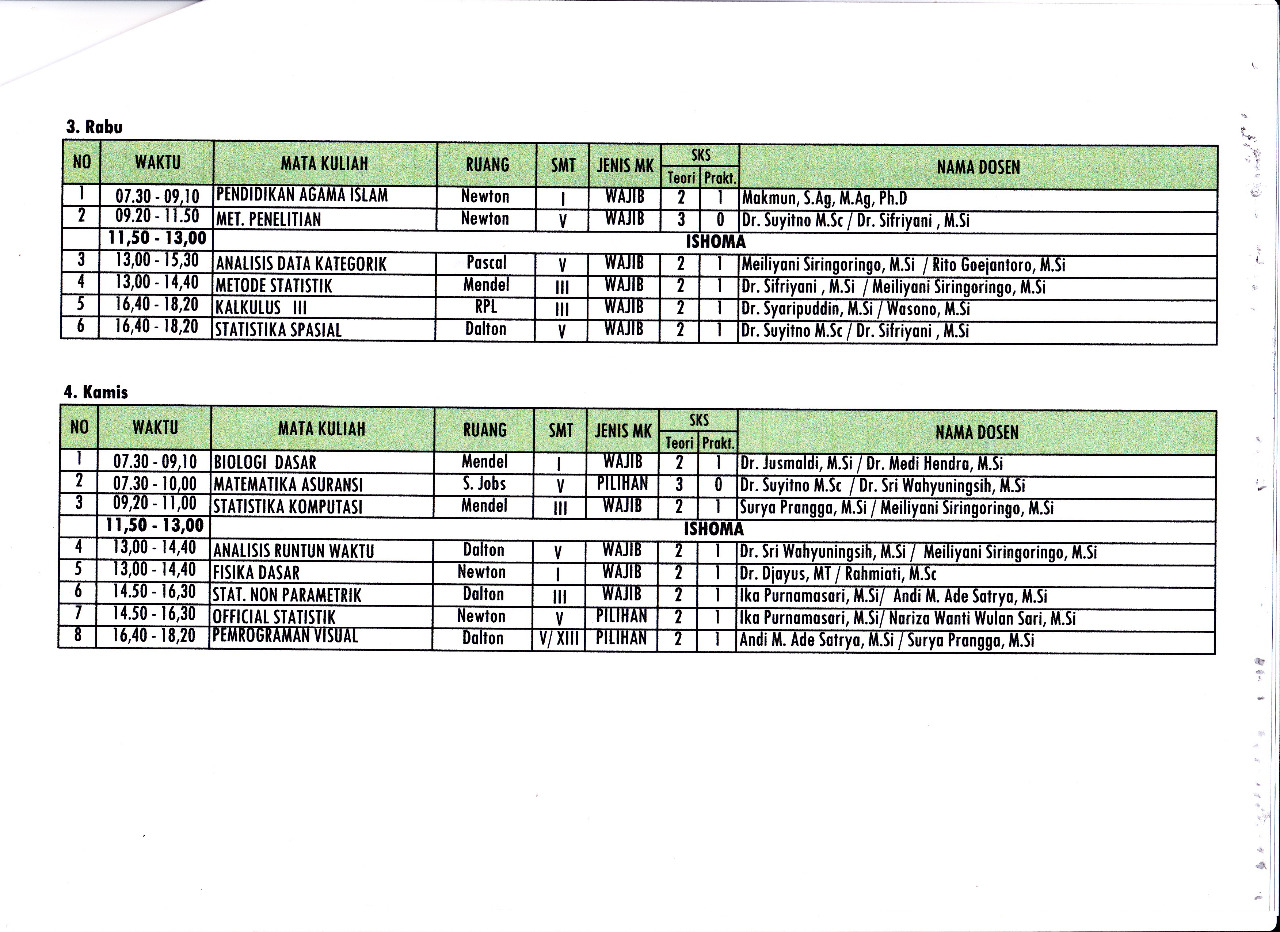 Jadwal Kuliah Semester Ganjil 2019 2020 Program Studi Statistika