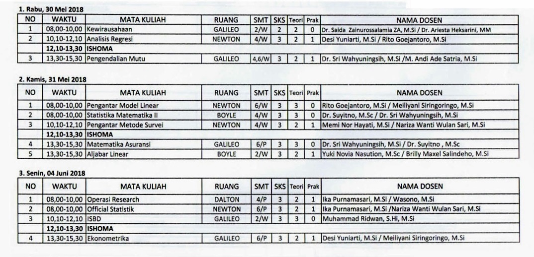 Jadwal Uas Semester Genap 2017 2018 Program Studi Statistika Program Studi Statistika
