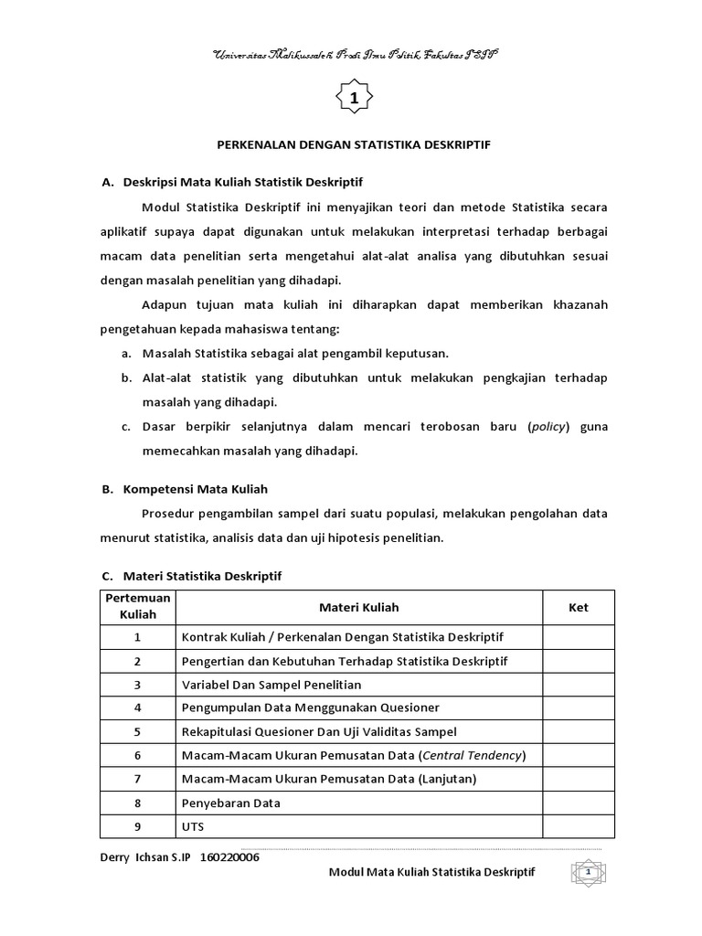 Perkenalan Dengan Statistika Deskriptif A Deskripsi Mata Kuliah Statistik Deskriptif