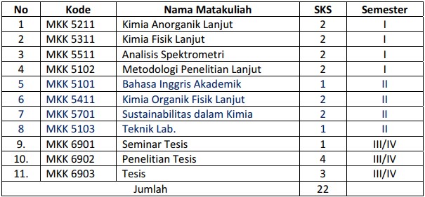 Kurikulum 2011 Departemen Kimia Fmipa Ugm