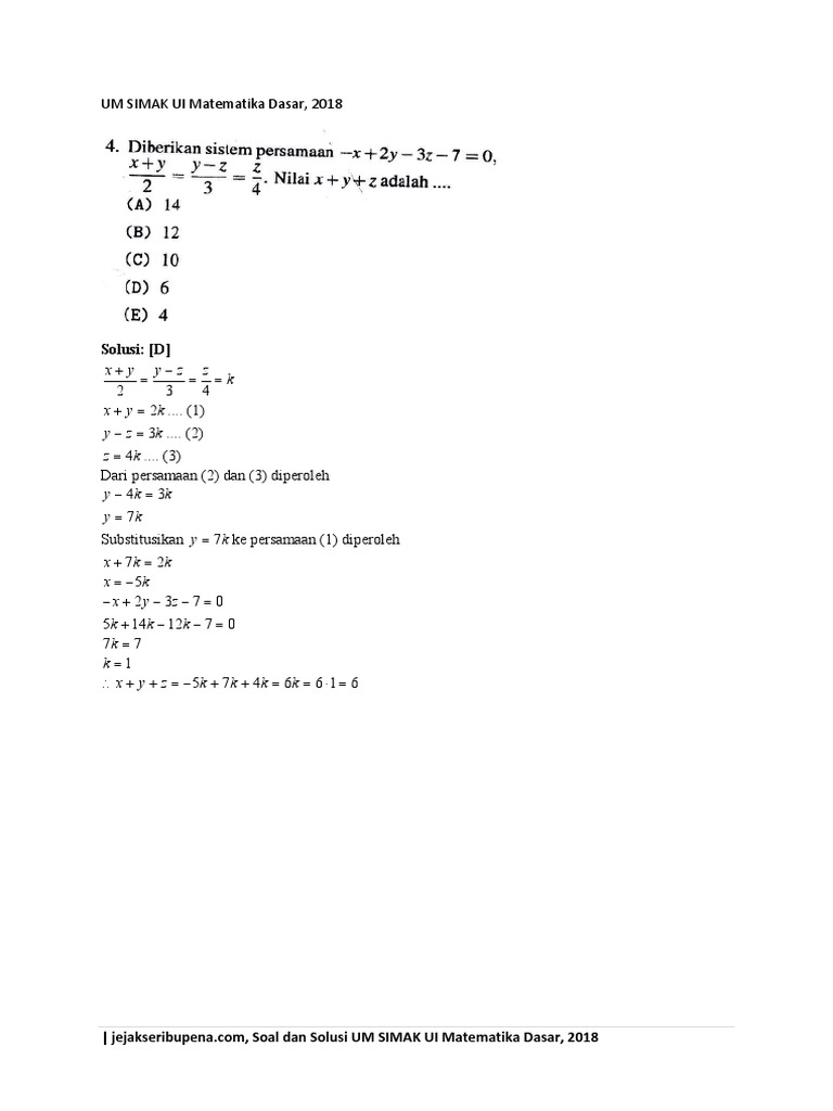 Soal Seleksi Masuk Universitas Indonesia 2018 Simak Ui Jibang Pardamean Hutagaol Berbagi Ilmu Matematika Informasi