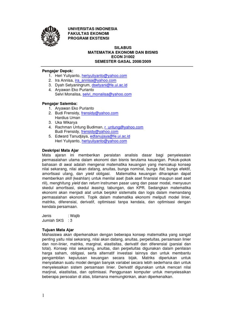Pdf 992 Matematika Bisnis Reyhan Artha Academia Edu