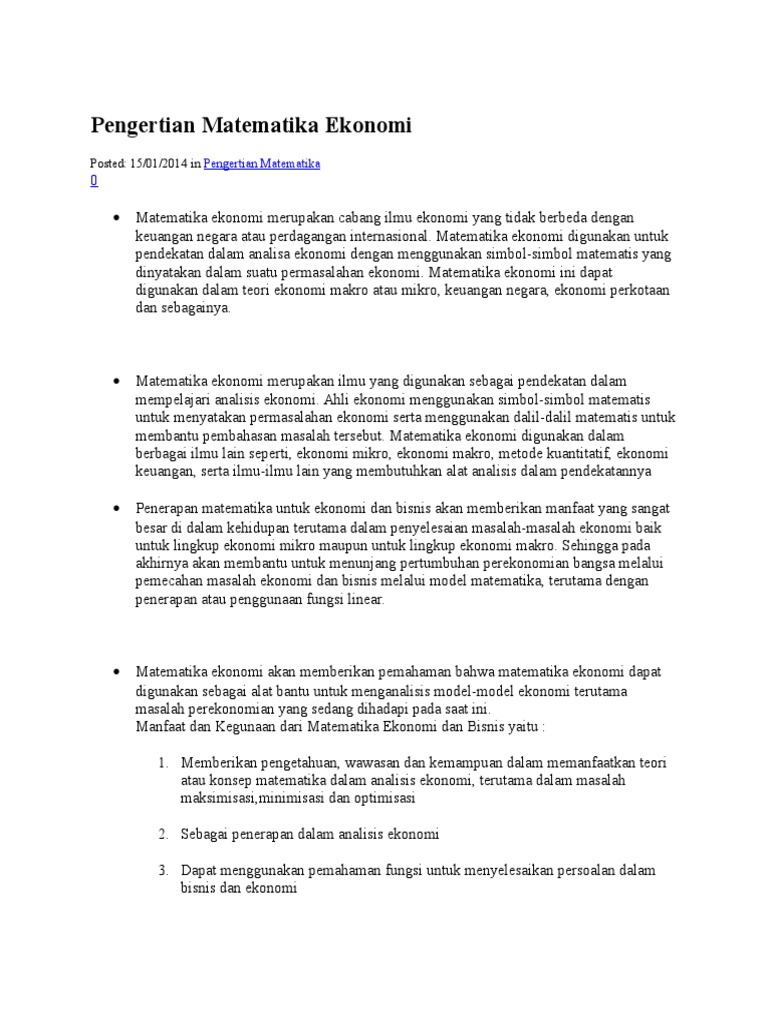 Pdf Matematika Ekonomi