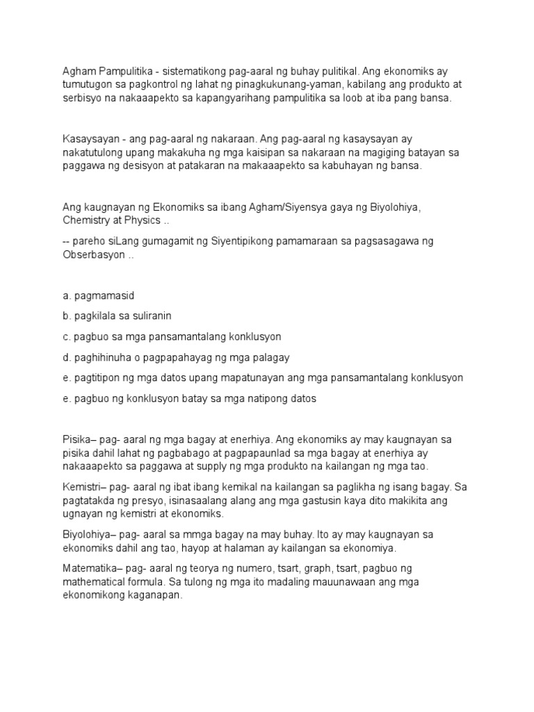Ekonomiks Yunit1 Aralin 1 7 Docx 1 Aralin 1 Kahulugan At Kahalagahan Ng Ekonomiks Kahulugan Ng Ekonomiks Ang Ekonomiks Ay Isang Sangay Ng Agham Course Hero