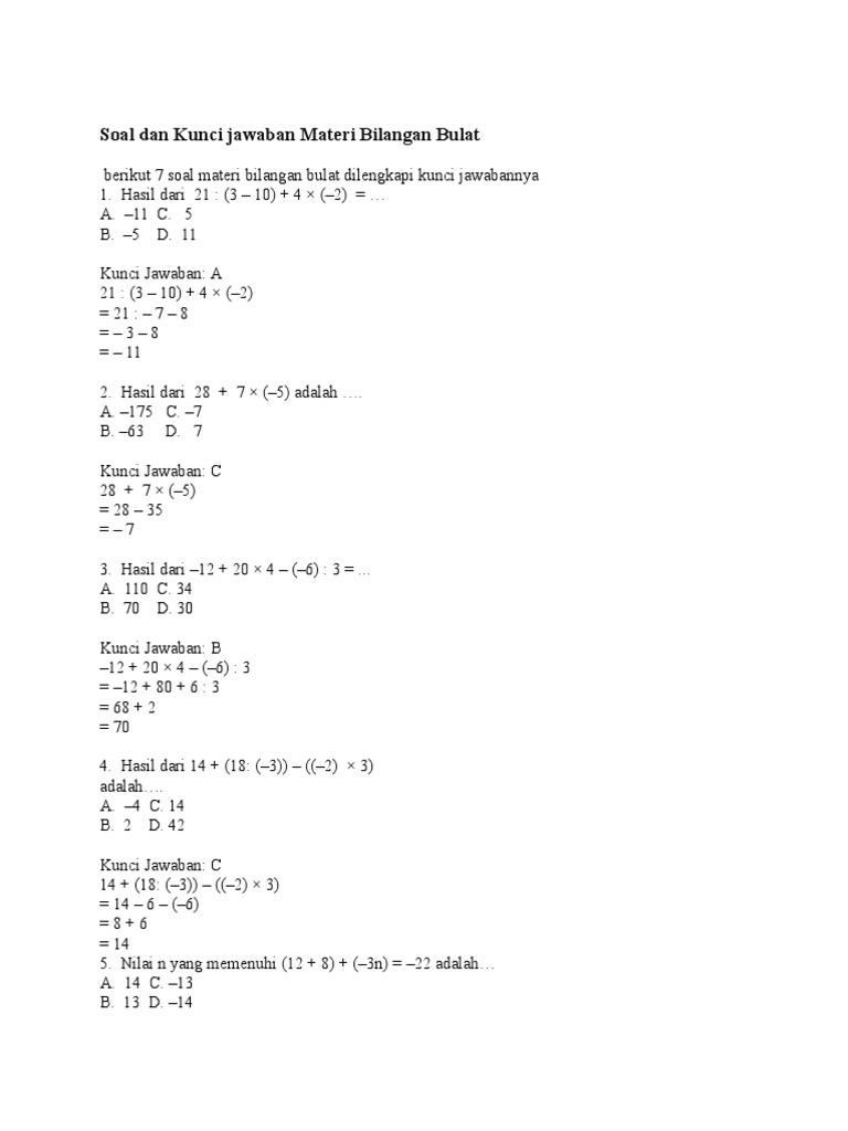 Contoh Soal Bilangan Bulat Negatif Kelas 6 Contoh Soal M R S Kimia
