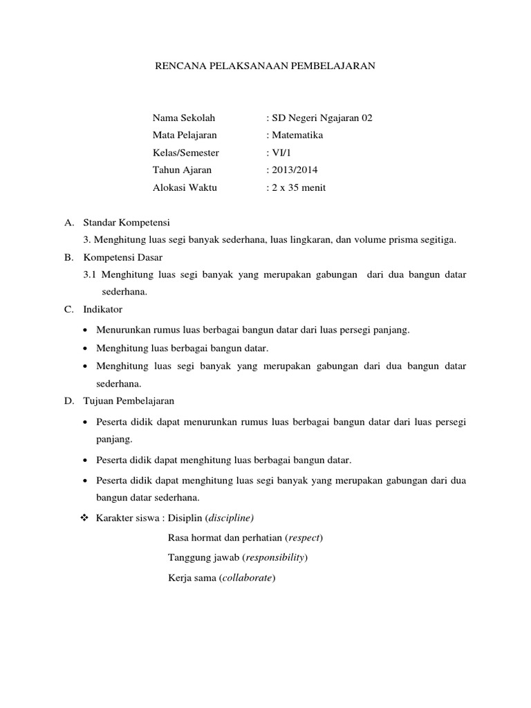 Luas Dan Keliling Bangun Datar 1 Soal Kelas 6 Sd 1 Rumus Luas Persegi Panjang Adalah A B C D Pdf Free Download