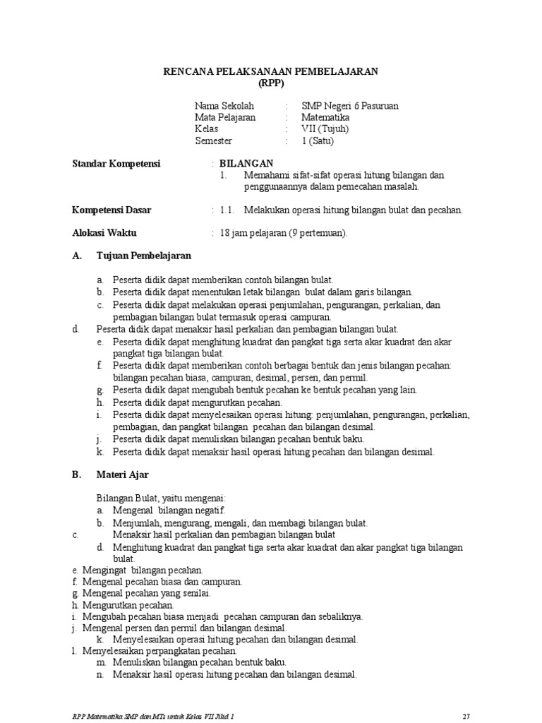 Www Divapendidikan Com Rencana Pelaksanaan Pembelajaran Rpp Satuan Pendidikan Smpn S Mata Pelajaran Matematika Kela Matematika Kelas 7 Matematika Belajar
