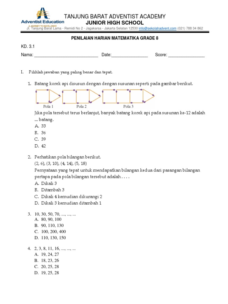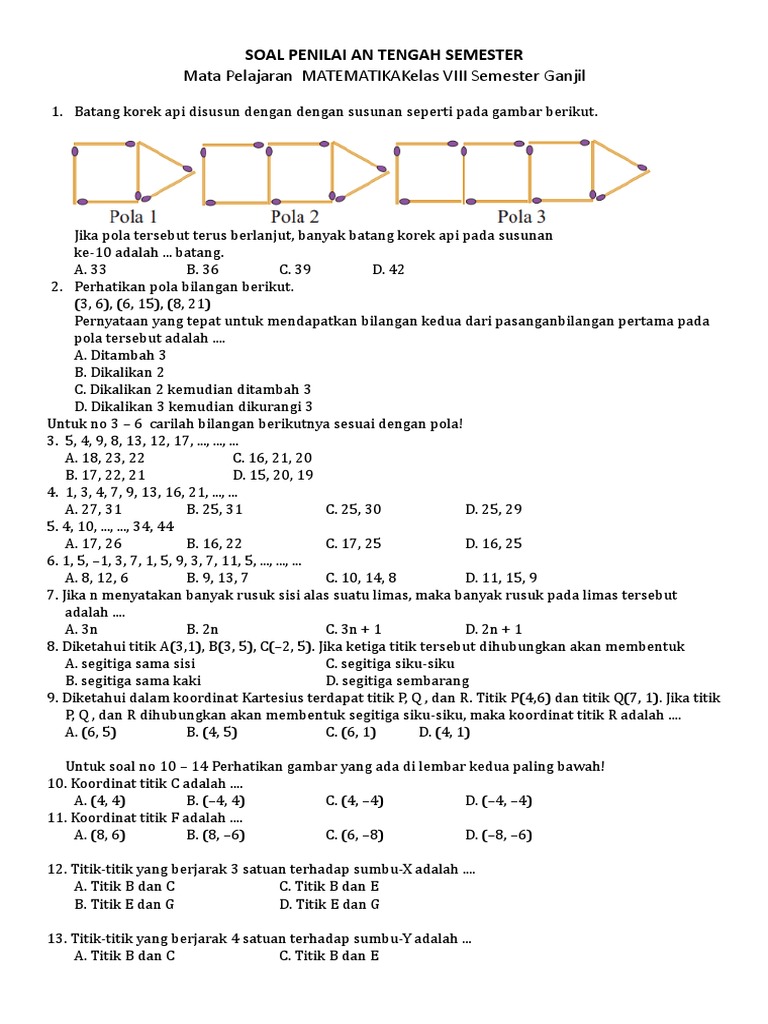 Selanjutnya kita ratakan ujung dan bawahnya agar rapi. Kunci jawaban dan pembahasan soal uji kompetensi 1 matematika kelas 8 kurikulum 2013 revisi 2017 1. 42 timss 2003 8th grade mathematics item 2.