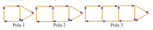 Gambar berikut adalah pola bilangan yang dibuat dari batang korek api. Batang korek api disusun dengan dengan susunan seperti pada gambar berikut. Pendahuluan pola bilangan adalah rangkaian dari beberapa angka yang membentuk pola yang tertentu.