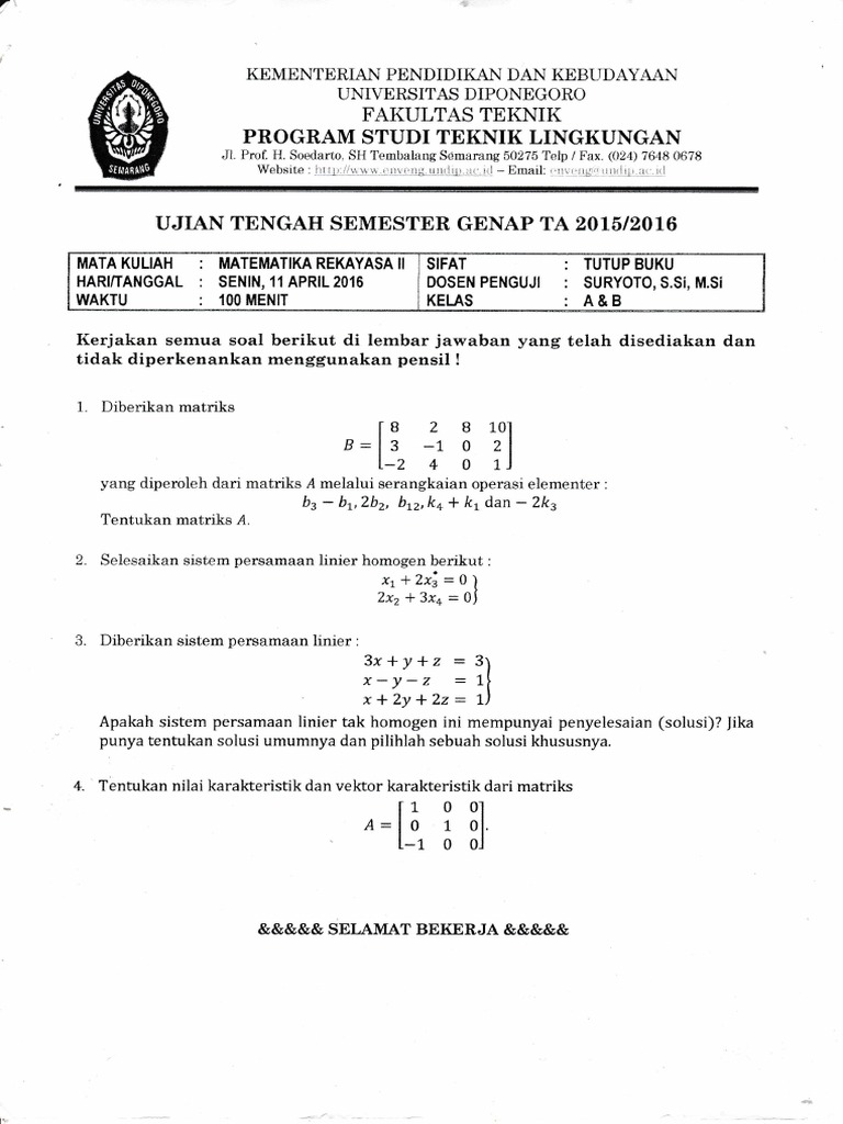 Fakultas Teknik Dan Ilmu Komputer Fastikom Unsiq Jawa Tengah Di Wonosobo Jadwal Uas Teknik Sipil Kelas B