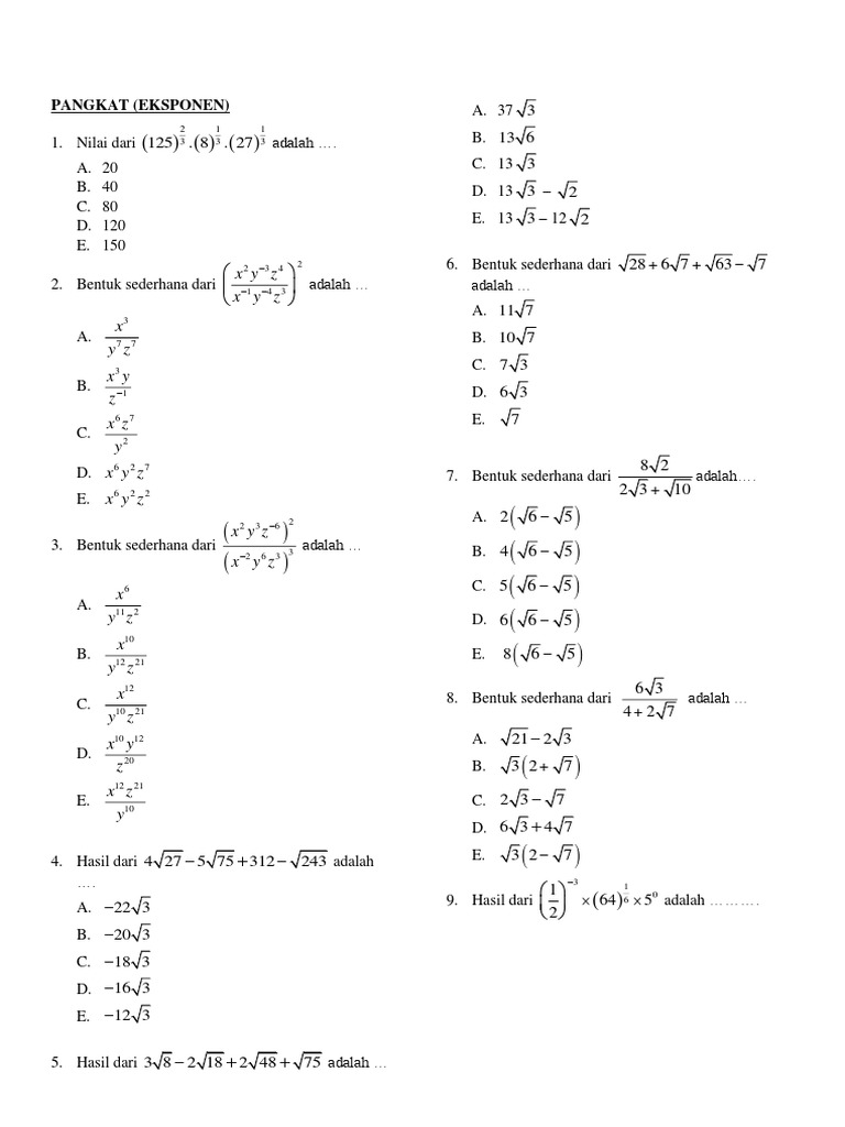 Contoh Soal Bentuk Akar Eksponen Logaritma Dan Pengertiannya Dosenpintar