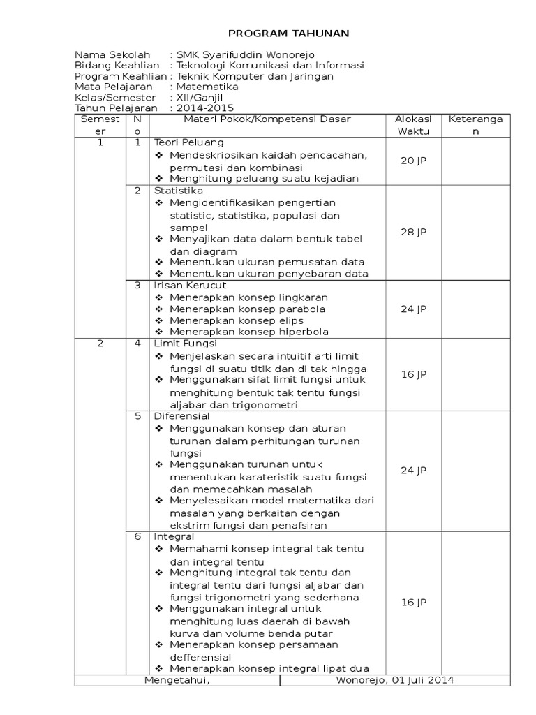 Pdf Program Semester Mata Pelajaran Matematika Satuan Pendidikan Smk Negeri 1 Talawi Kelas Semester X 2 Tahun Pelajaran 2013 2014 No Kd Kompetensi Dasar Alok