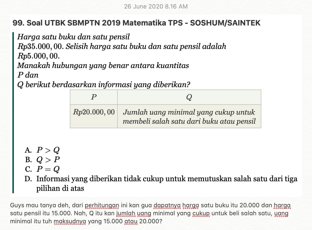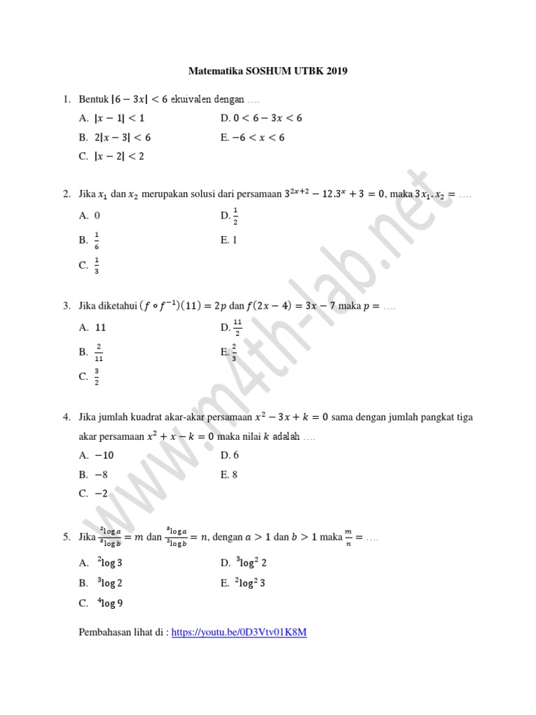 Soal Asli Utbk 2019 Matematika Soshum Pertidaksamaan Nilai Mutlak Youtube Matematika B B Asli