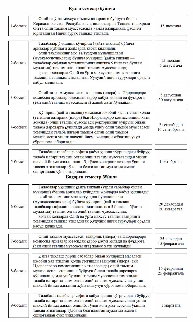 393 Son 20 06 2017 Oliy Ta Lim Muassasalariga O Qishga Qabul Qilish Talabalar O Qishini Ko Chirish Qayta Tiklash Va O Qishdan Chetlashtirish Tartibi To G Risidagi Nizomlarni Tasdiqlash Haqida