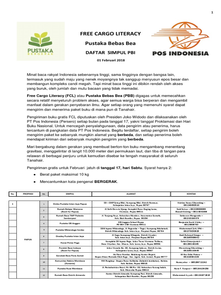 Free Cargo Literacy Pustaka Bebas Bea Mengirim Dan Menerima Paket Buku Di Mana Pun Di Tanahair Pdf Document