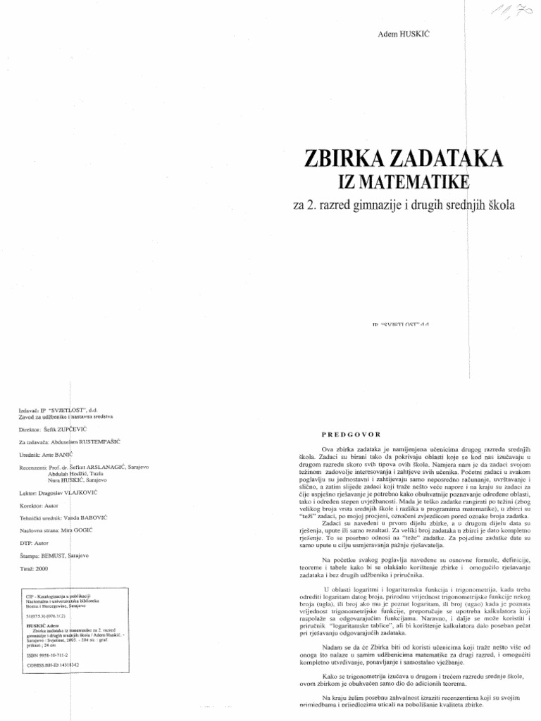 Zbirka Zadataka Iz Matematike Za 2 Razred Srednje Skole Mali Oglasi I Prodavnice Goglasi Com