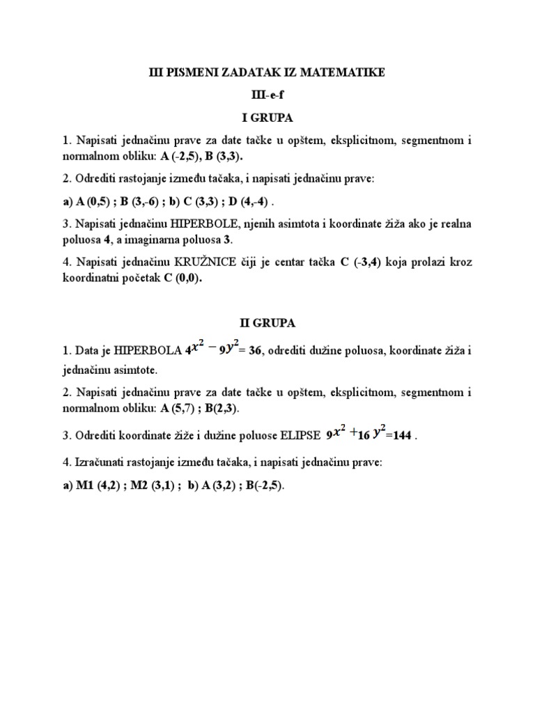 Inicijalni Test Br 1 Iz Matematike Za Drugi Razred Srednje Skole Za Gimnazije Za Tehnicke Skole