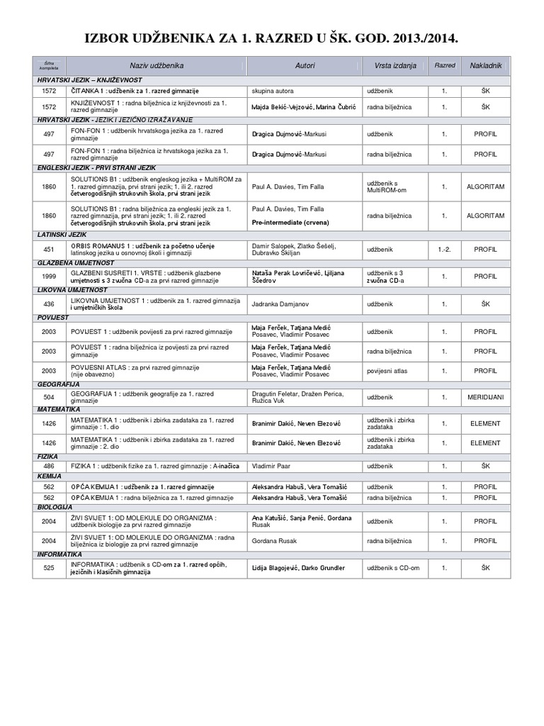 Free Kemija Zadaci Za 1 Razred 2 Free Elektrotehni Ar 1 Razred Srednje Skole Engleski Jezik