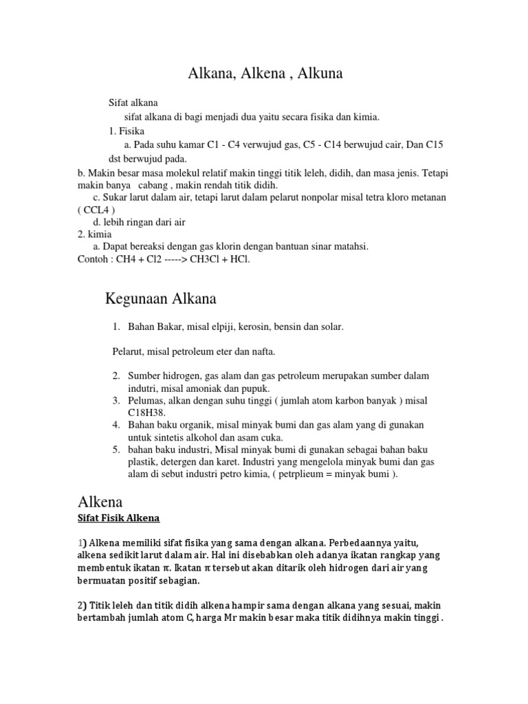 Manfaat Kegunaan Alkana Alkena Alkuna Fungsi Senyawa Kimia
