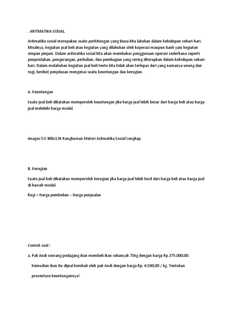 Aritmatika Sosial Rumus Materi Laba Rugi Presentase Pajak