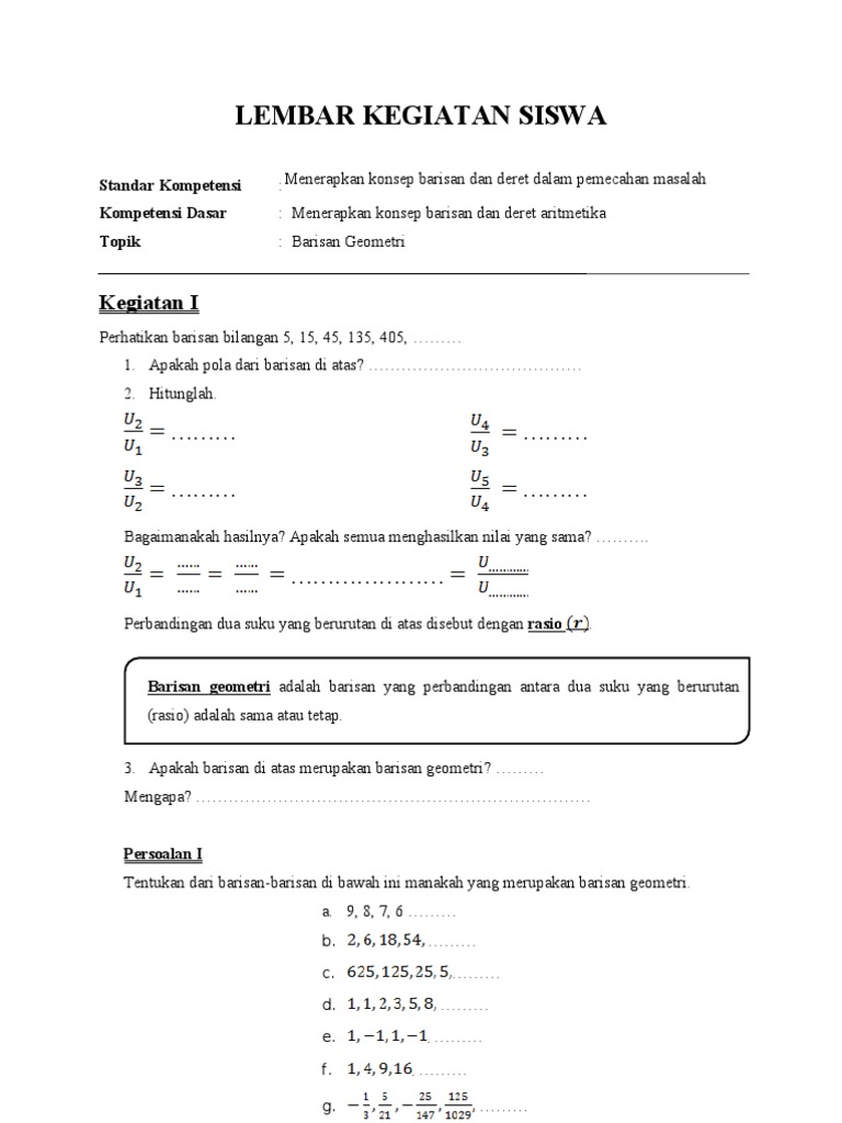 Materi barisan dan deret geometri kelas 8. Sedangkan untuk rumus mencari suku sn. Sn a 1 rn1 r contoh soal geometri. Barisan aritmatika barisan dan deret aritmatika merupakan baris bilangan yang berdasarkan pola.