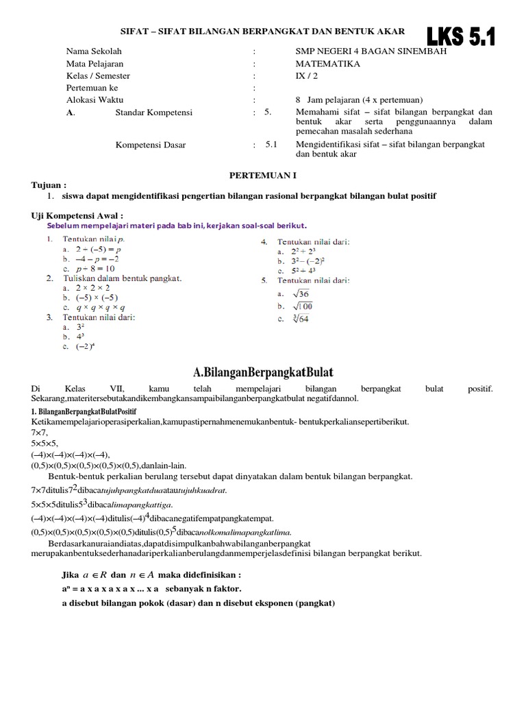 Materi Kelas 9 Pangkat Nol Pangkat Negatif Dan Bentuk Akar Tolong Dibantu Bagi Yang Bisa Soal Yg Brainly Co Id