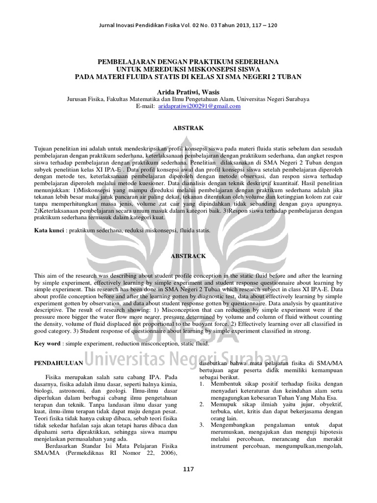Pemahaman Konsep Siswa Kelas Xi Pada Materi Fluida Statis Berdasarkan Pembelajaran Collaborative Inquiry Repository Unja