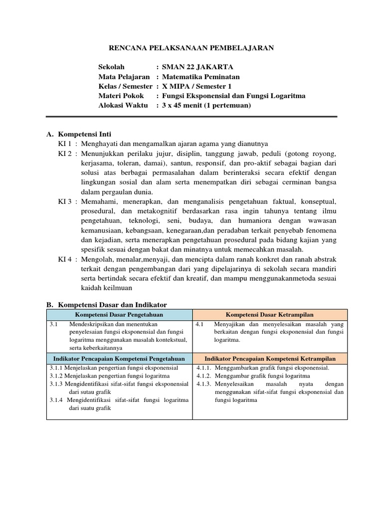 Doc Rencana Pelaksanaan Pembelajaran Rpp Satuan Pendidikan Sma Kelas Semester X 1 Mata Pelajaran Metematika Peminatan Matematika Dan Ilmu Pengetahuan Alam Angger Desky Academia Edu