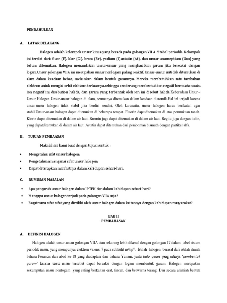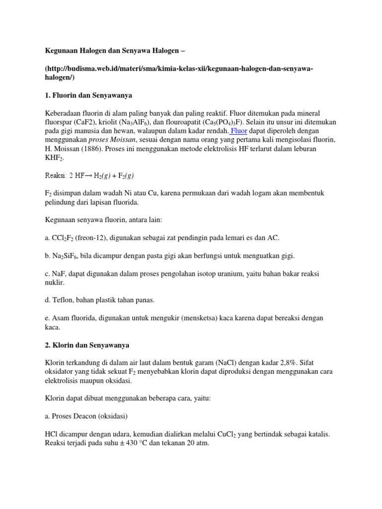 Halogen merupakan golongan unsur non logam yang sangat reaktif dalam menerima elektron. Nadiya zuhaida 22 3. Materi pelajaran kimia sma kelas 12 di atas dapat dipergunakan untuk bahan belajar agar lebih mudah dipahami.