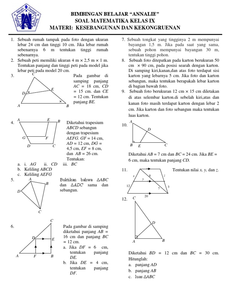Tolong Di Bantu Kak Tugas Kelas 9 Materi Tentang Kesebangunan Dan Kekongruenan Bangun Datar Brainly Co Id