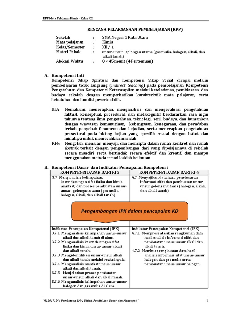 Rpp 1 Lembar Kimia Kelas Xii Semester 1 Revisi Terbaru 2020 2021 Kherysuryawan Id