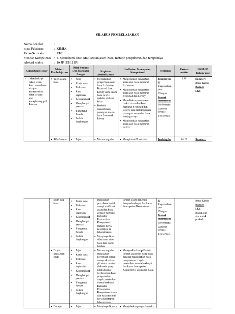 Rpp Kimia Kelas Xi Kurikulum 2013