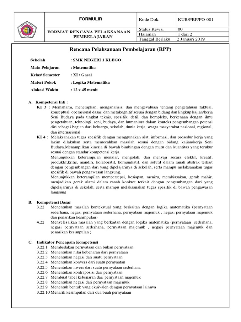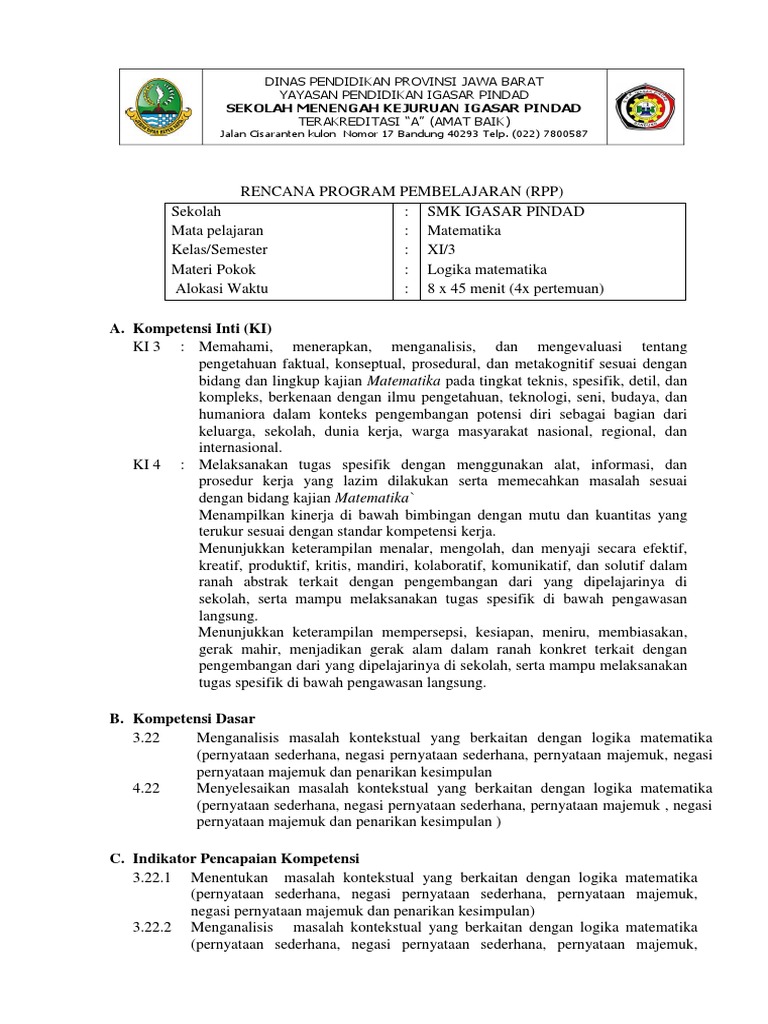 Matematika Kelas 11 Logika Matematika Ingkaran Konjungsi Disjungsi Implikasi Dan Biimplikasi